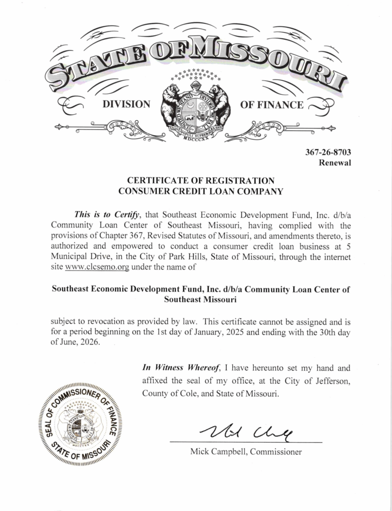 At the Community Loan Center, we give borrowers 12 months to repay their loan with a maximum APR of 21.8% (based on $1000 loan, 18%, with monthly payments and $20 administrative fee)